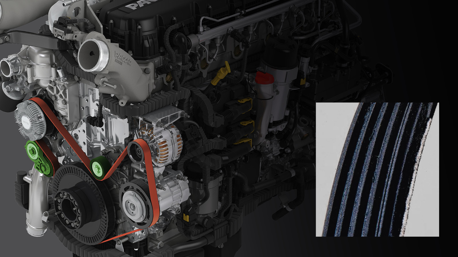 sEn moderne PACCAR motor er et genialt sæt af forskellige systemer, der skal arbejde problemfrit sammen. Vores multirem, sammen med remstrammeren og styreremskiven, spiller en vigtig rolle i denne proces.